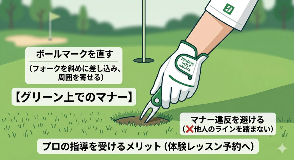 ショットが終わっても安心は禁物です。最もマナーが問われるのはグリーン上です。